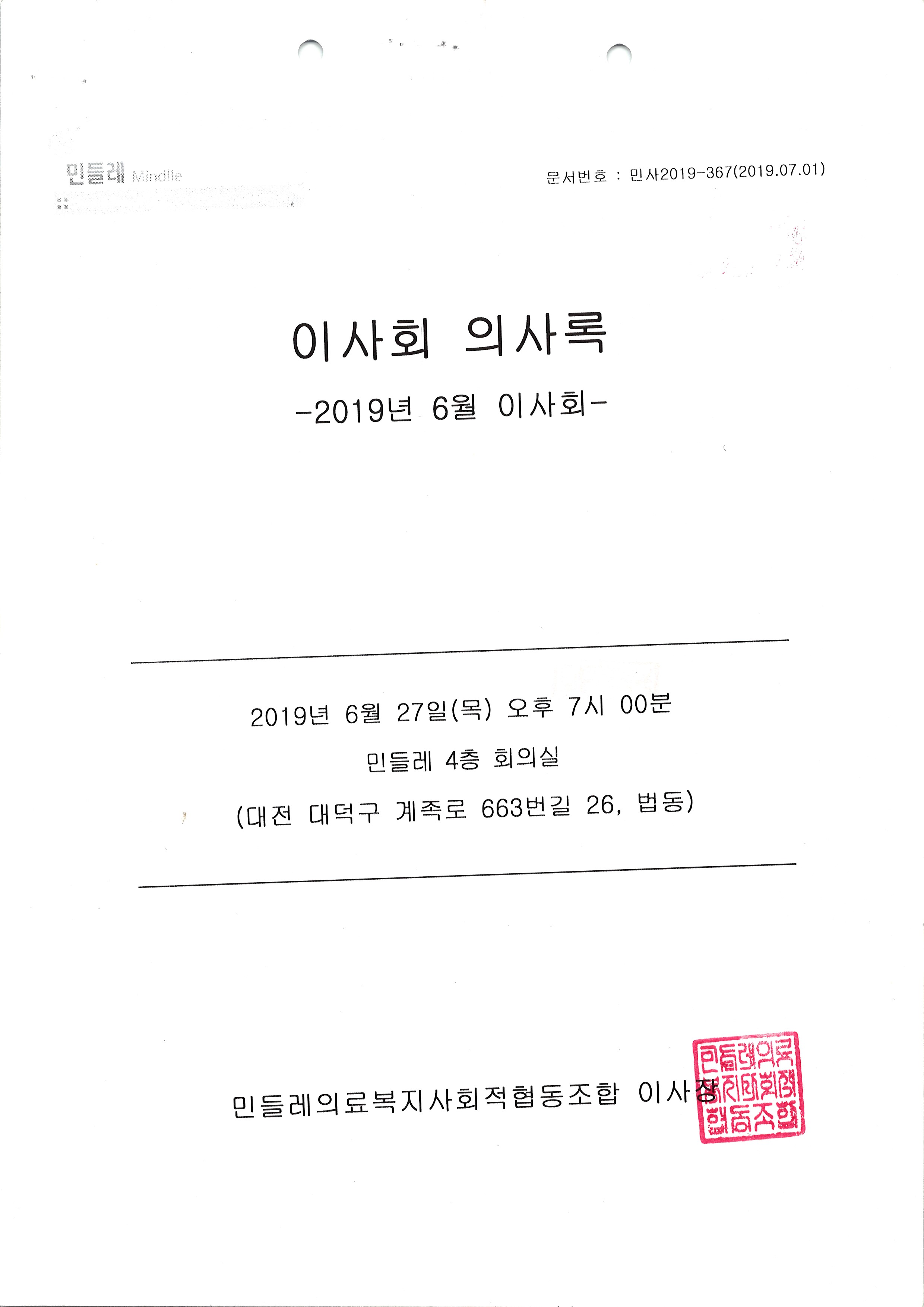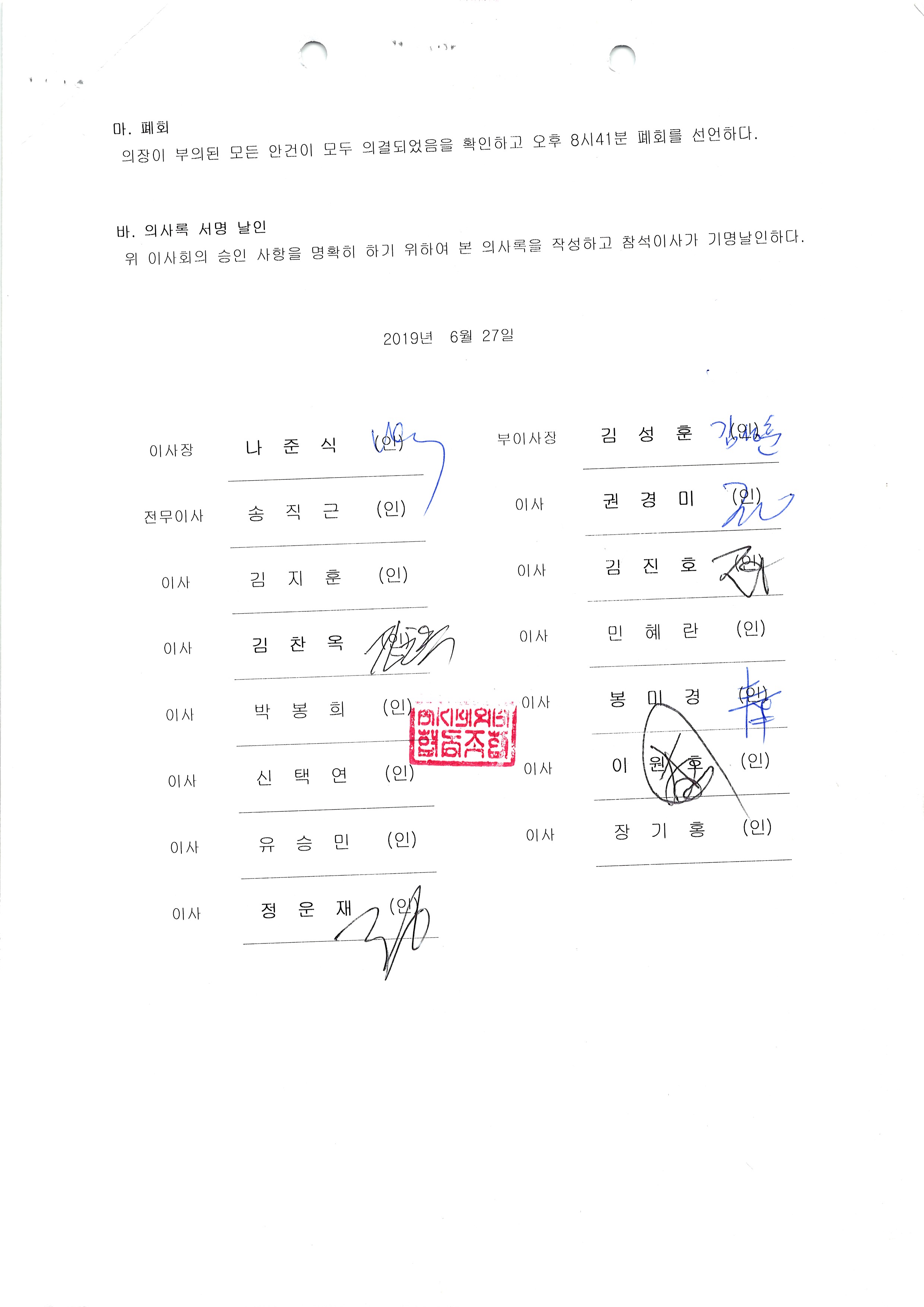 [2019-06] 정기이사회 결과보고