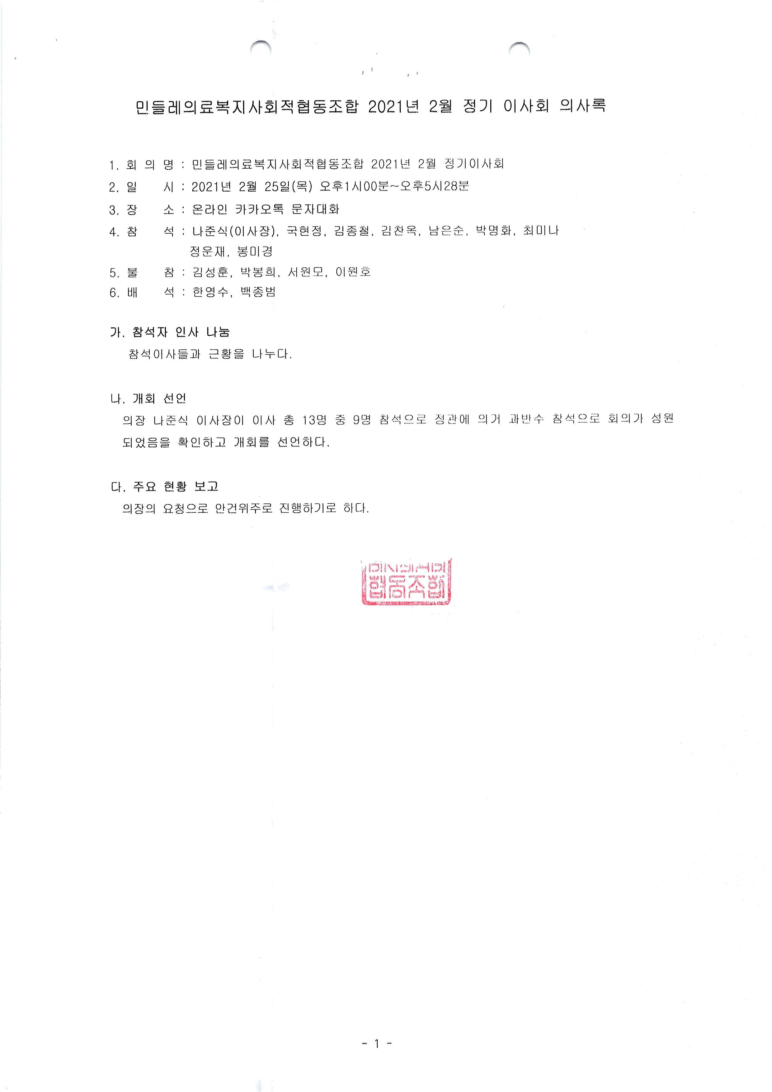 [2021-02] 정기이사회 결과보고