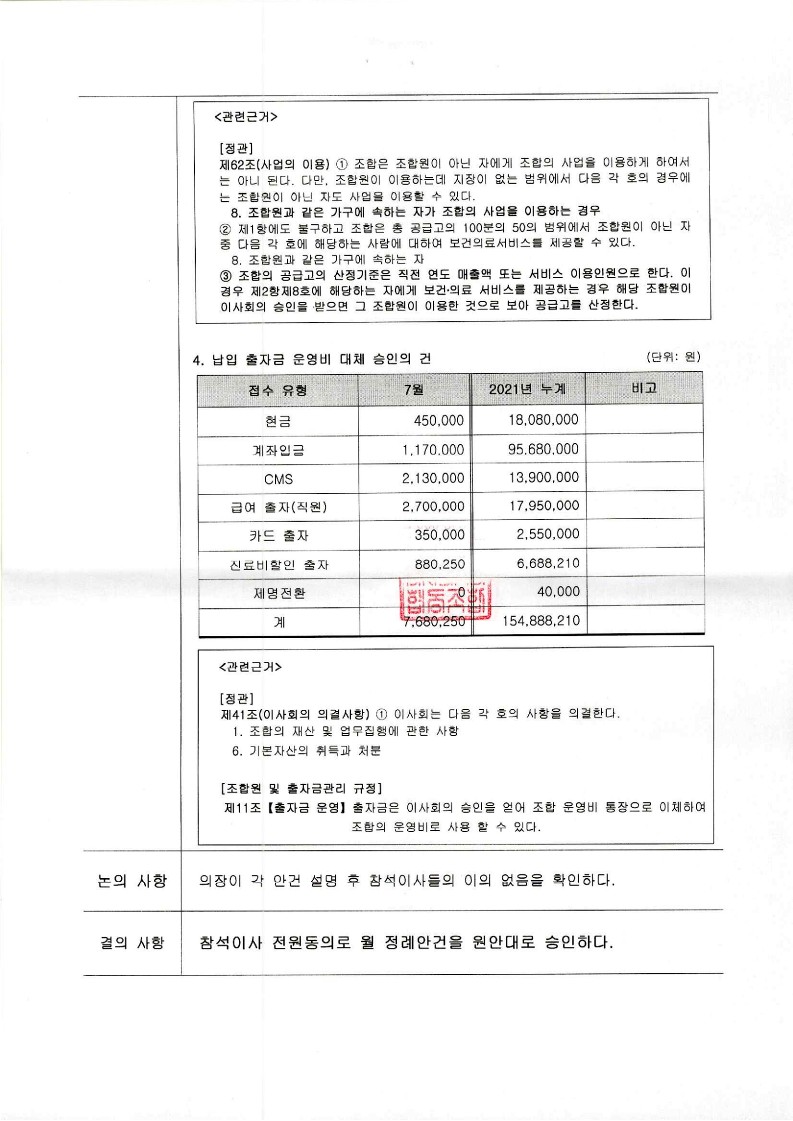 [2021-07] 정기이사회 결과보고