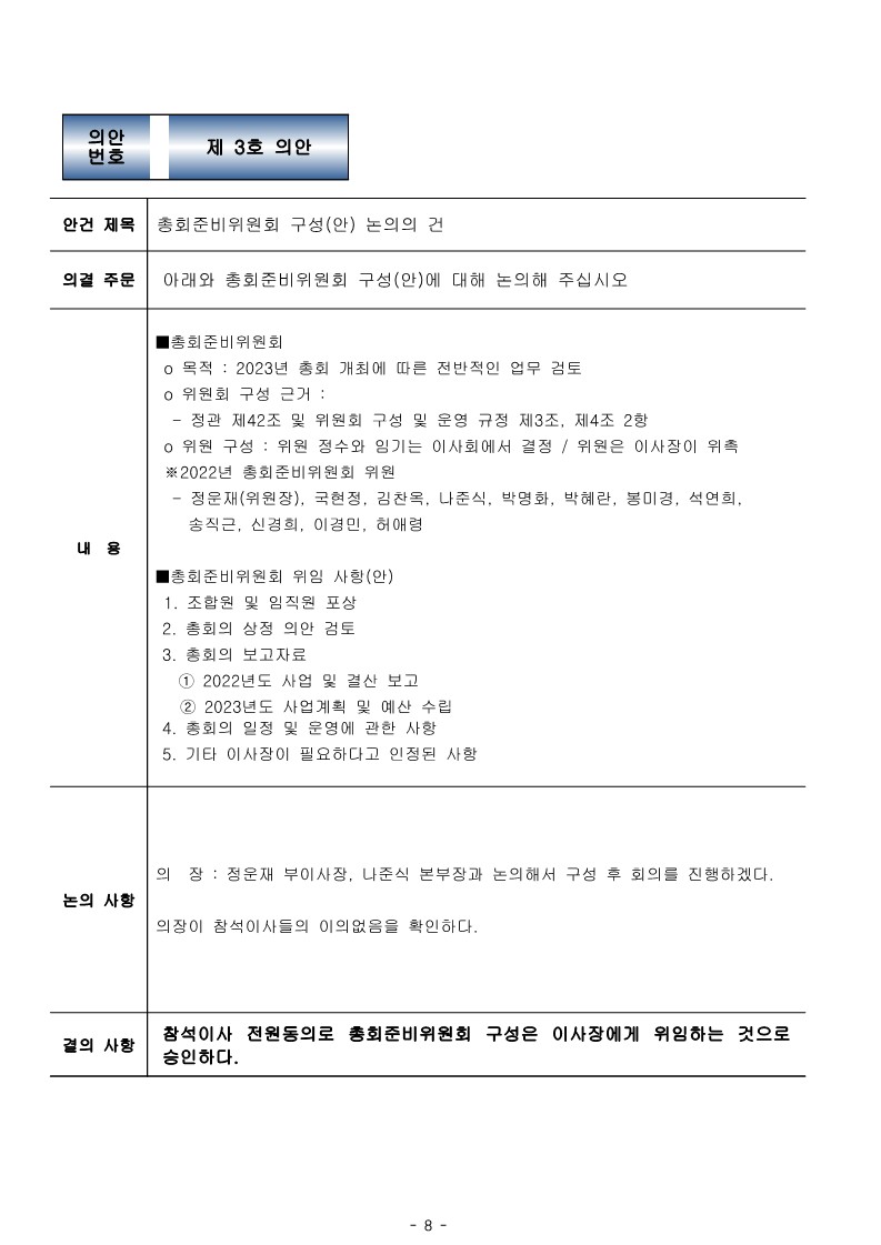 [2023-01] 정기이사회 결과보고