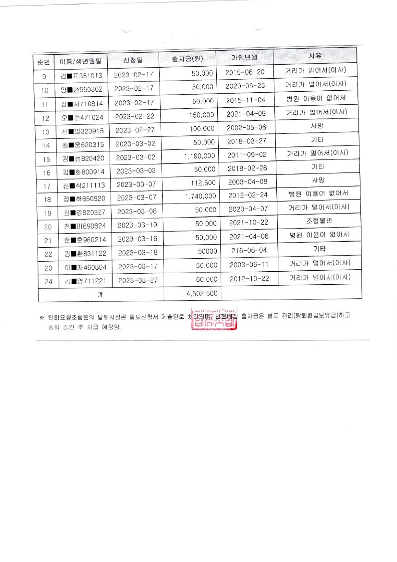 탈퇴 및 출자금반환 신청