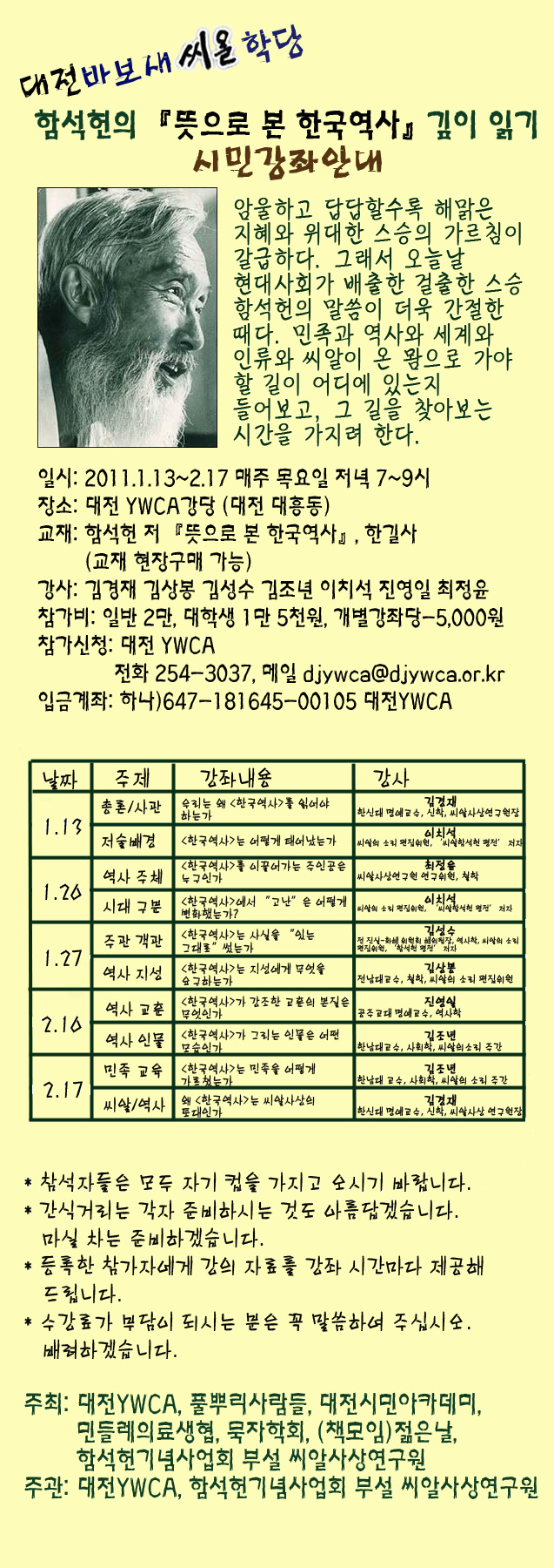 바보새 씨알학당, 대전인문학 강좌 1기