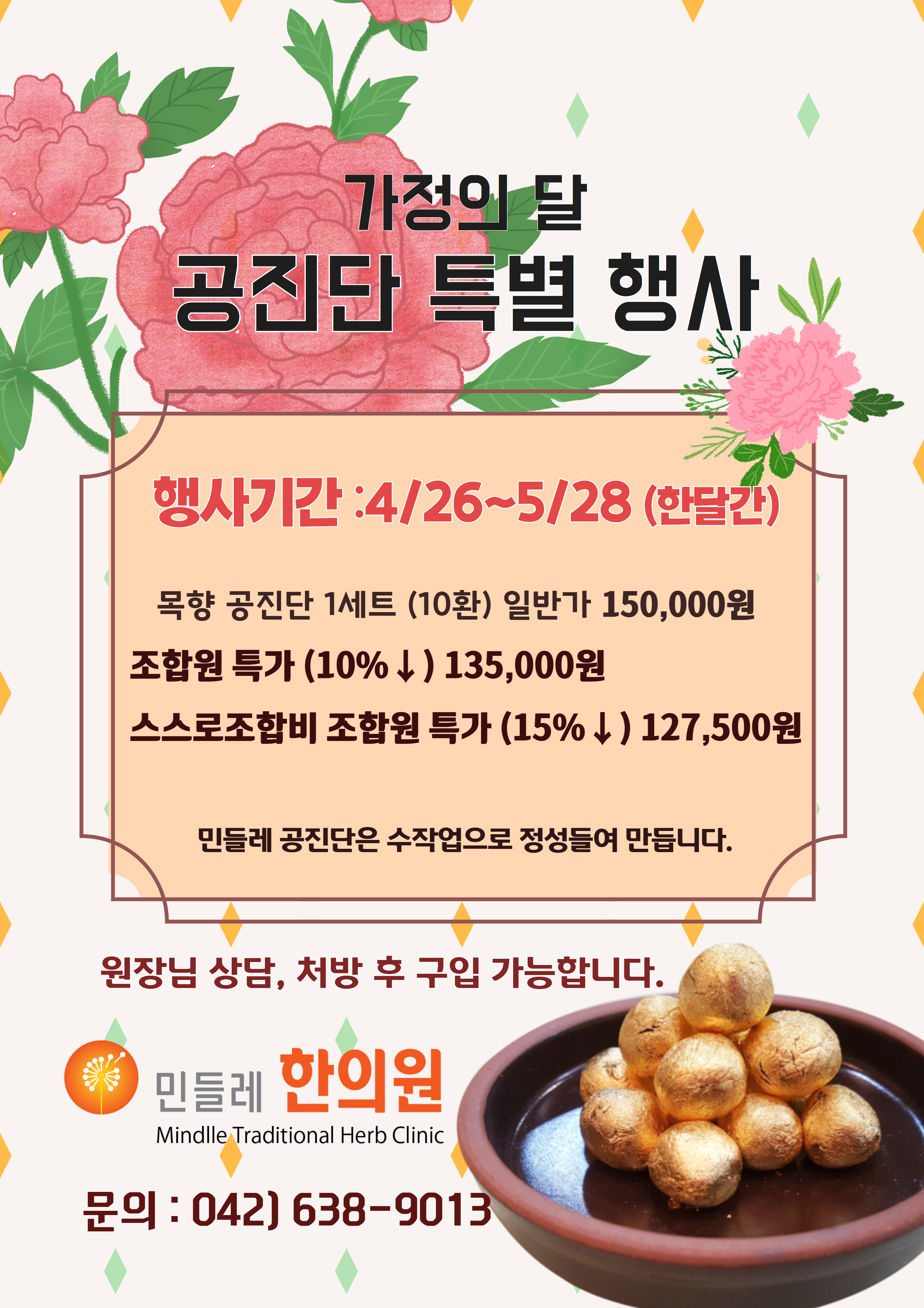 5월 가정의 달을 맞이하여 민들레한의원에서 공진단 행사를 합니다.