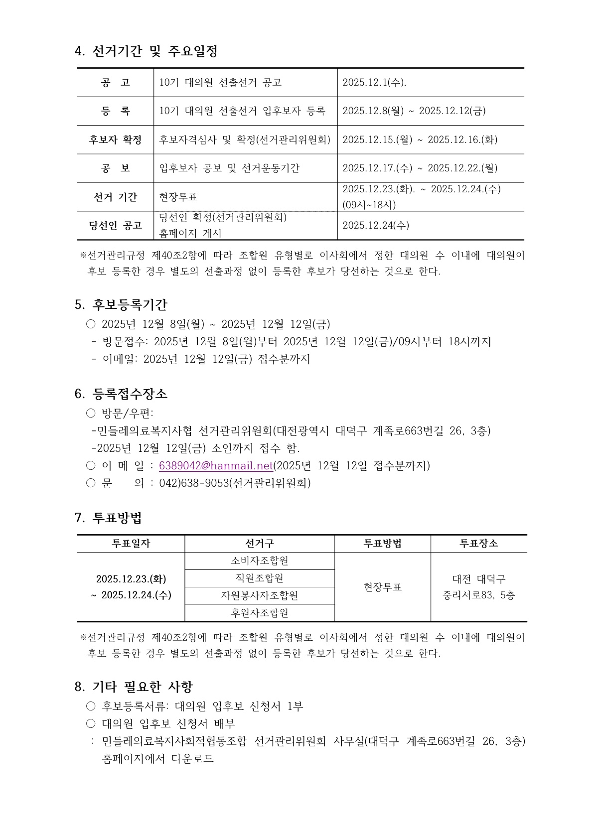 10기 대의원 선거 공고