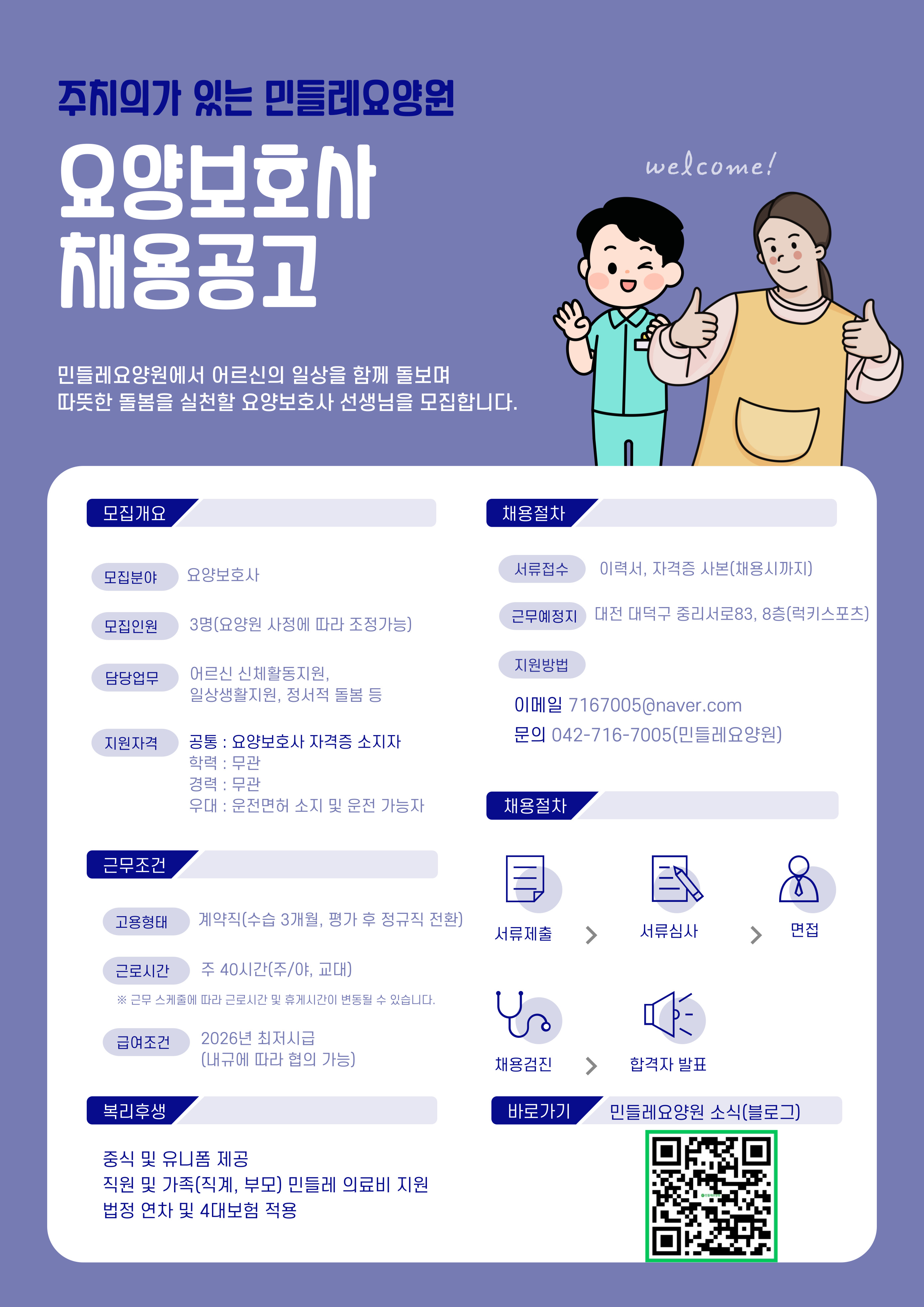 민들레요양원 요양보호사 채용공고