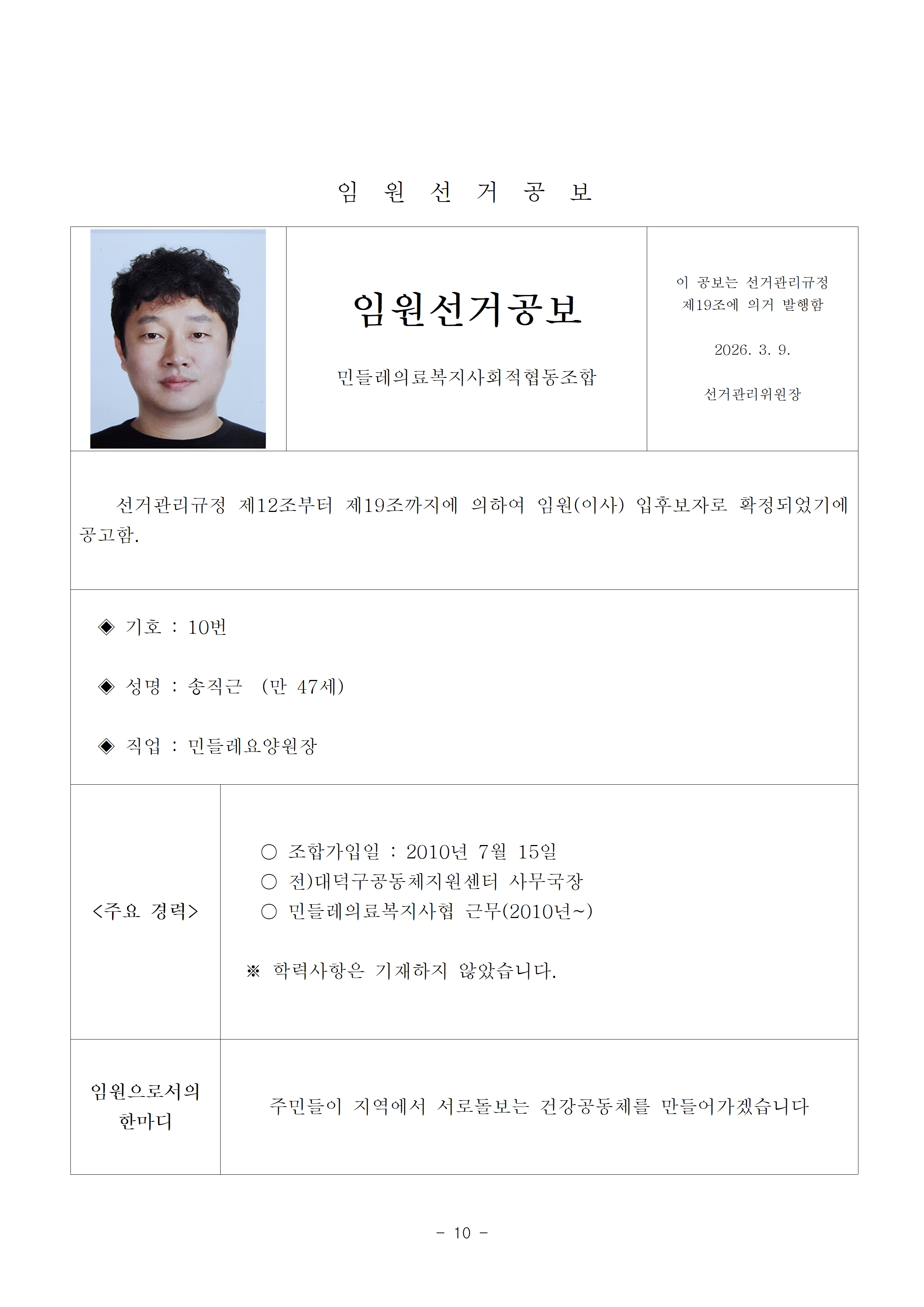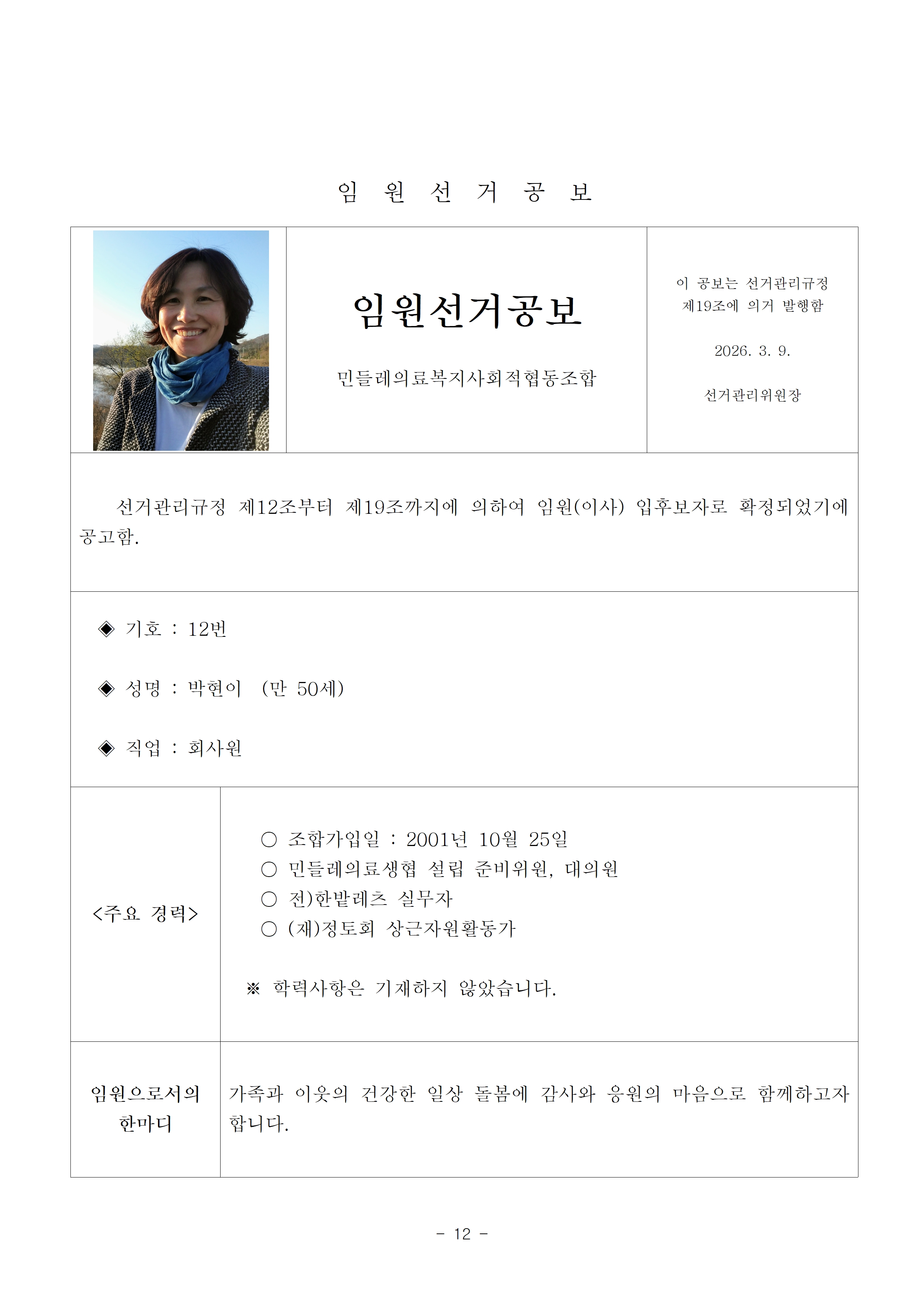 2026년 13기 임원(이사, 감사)선거 공보