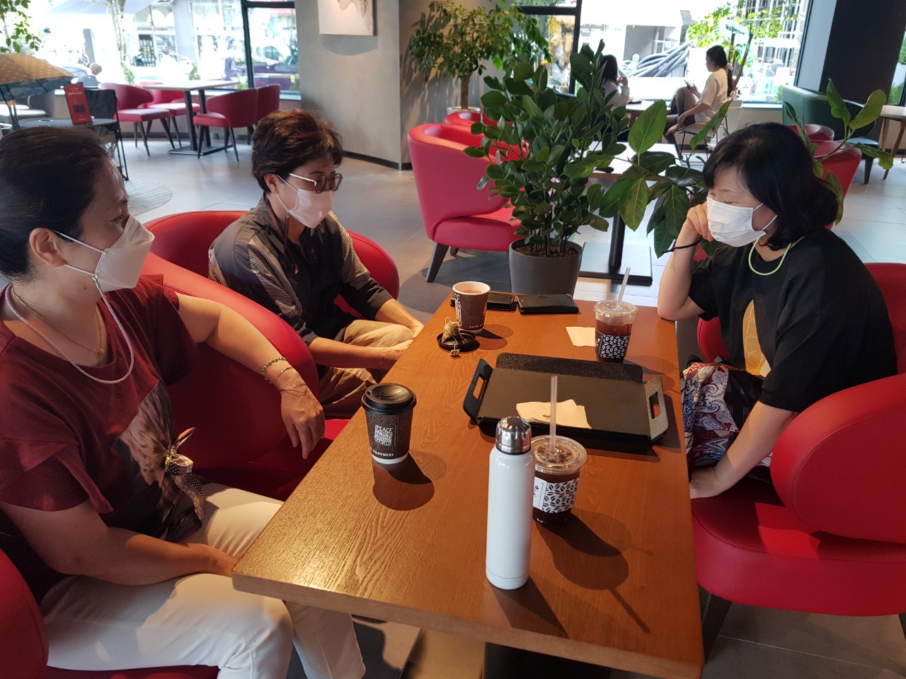 가까운 카페에서 오랜만에 얼굴도 보고 각자의 이야기도 듣고 수다 삼매경~입니다