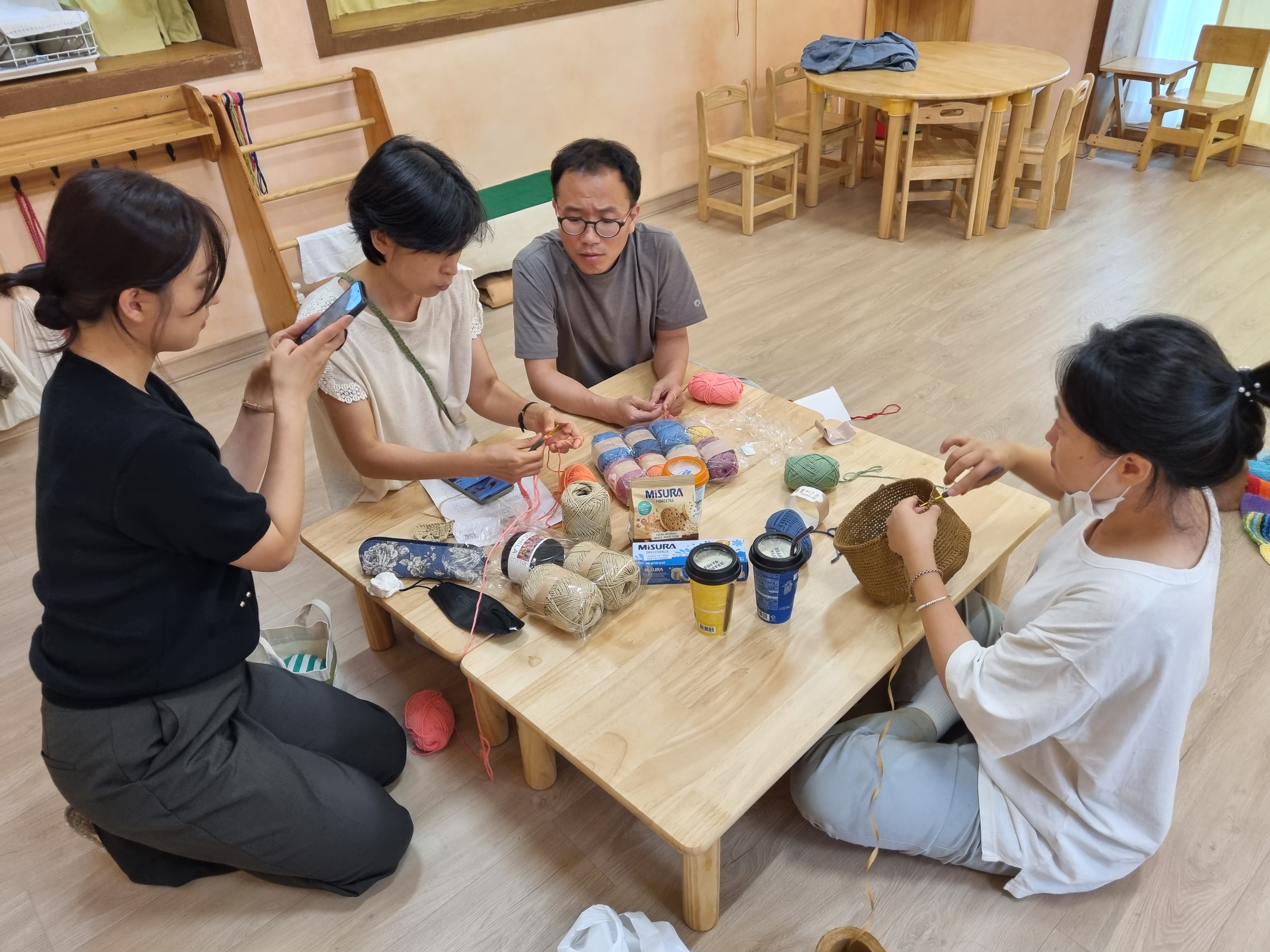 초급반 무지개끈 만들기 : 사슬뜨기에 짧은 뜨기 왕복하여 폭 늘리기 및 색깔 바꾸기 시도 중급반 가방만들기 : 바닥에서 몸통으로 이어나감. 모임 후 개인적으로 작업하는 양의 차이로 완성시기가 달라질듯함 총평: 기초 뜨기 습득 후 모양이 만들어지는 재미를 느낌, 아버님들은 모임 후 별도의 작업을 하지 않아 속도 차가 많이 나는 편임