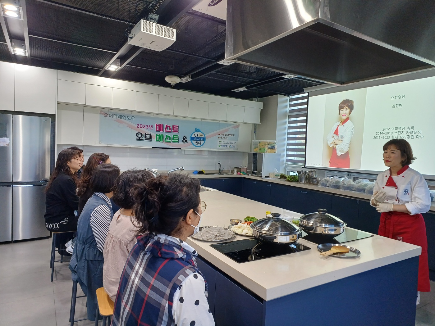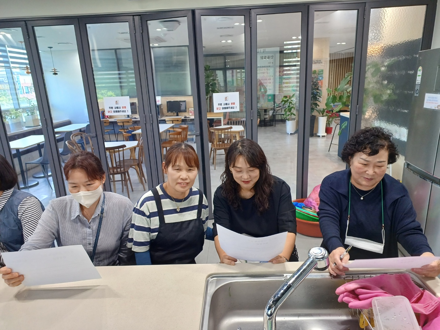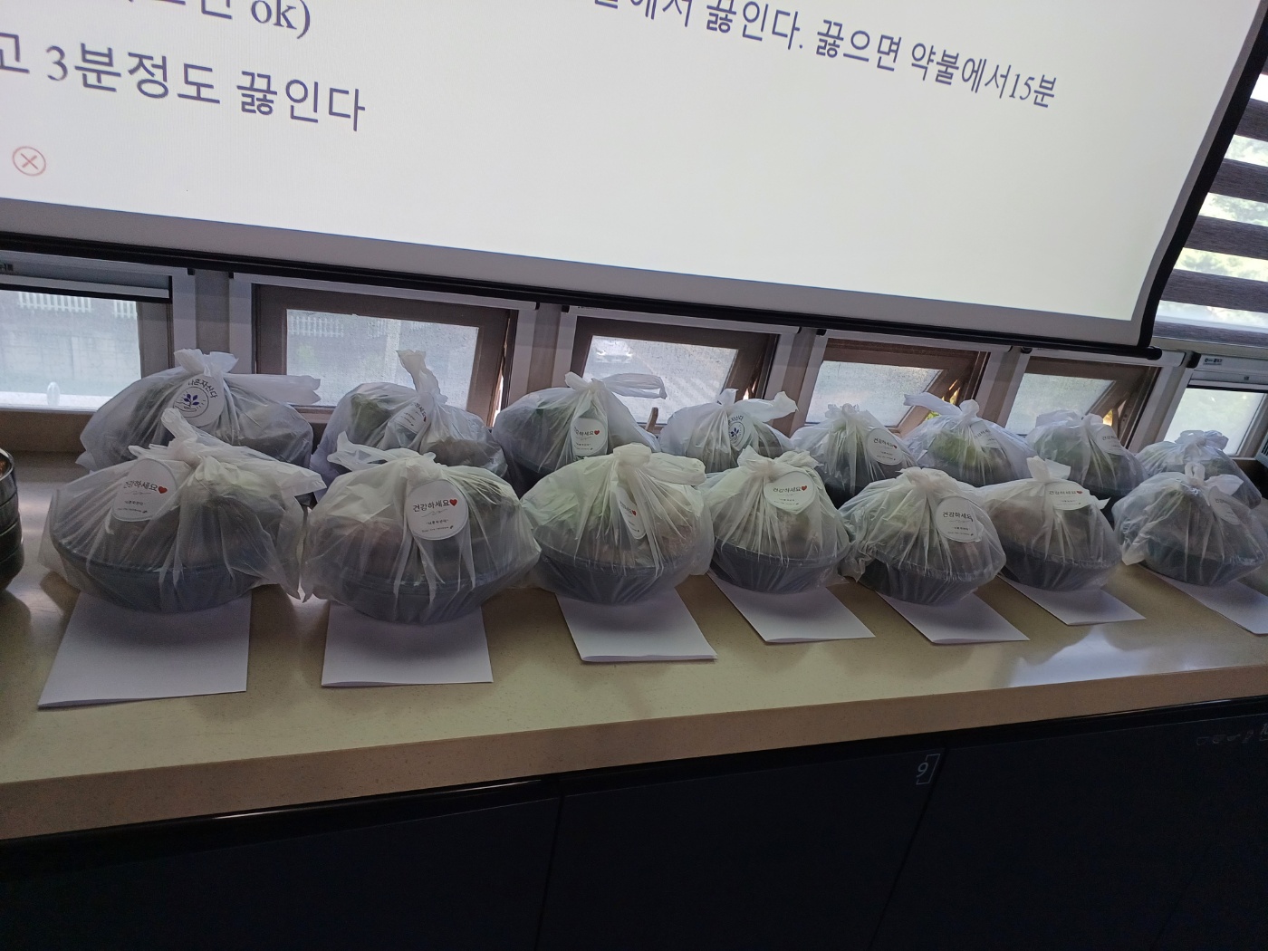 요리연구 선생님이 진행하는 요리수업에 참관하여 밀키트를 받아다가 건강반원들이 활동하는 대상자님께 가져가 요리를 해 드리거나 드실수 있도록 전달해 드리는 사업에 선정이 되어 참석하였습니다, 근육강화요리로 안동찜닭을 만들어보며 색색의 채소에 따라 우리몸 곳곳에 필요한 요소들을 알아보았습니다. 시연을 지켜보고 완성된 요리의 맛을 보며 양념의 부족분이나 과한 부분을 서로 이야기 나누어보고 평을 해보았습니다. 강사님이 준비해주신 밀키트를 받아다가 건강리더쿱의 돌봄활동가들은 어르신댁에 방문하여 안동찜닭을 전달하거나 맛있게 요리를 해드렸습니다. 활동가들의 수고로움으로 어르신들이 좋아하신다는 이야기를 들으니 뿌듯함을 느낄수 있었습니다.