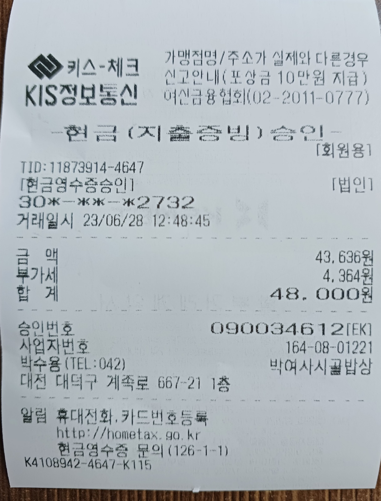 박여사식당/ 2023.06.28/ 식비/ 48,000원