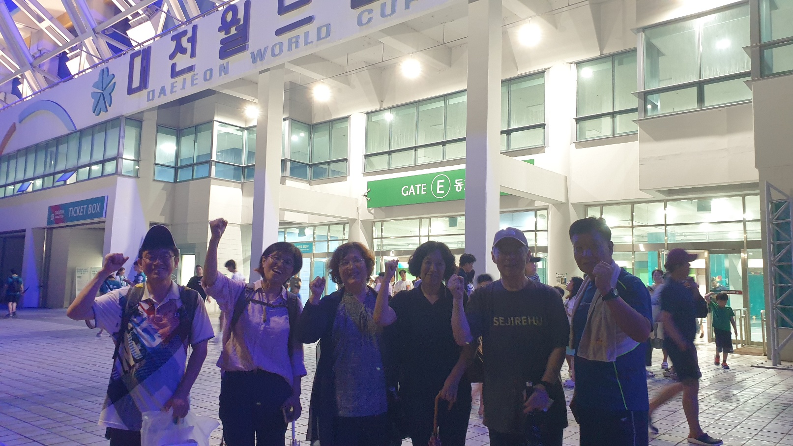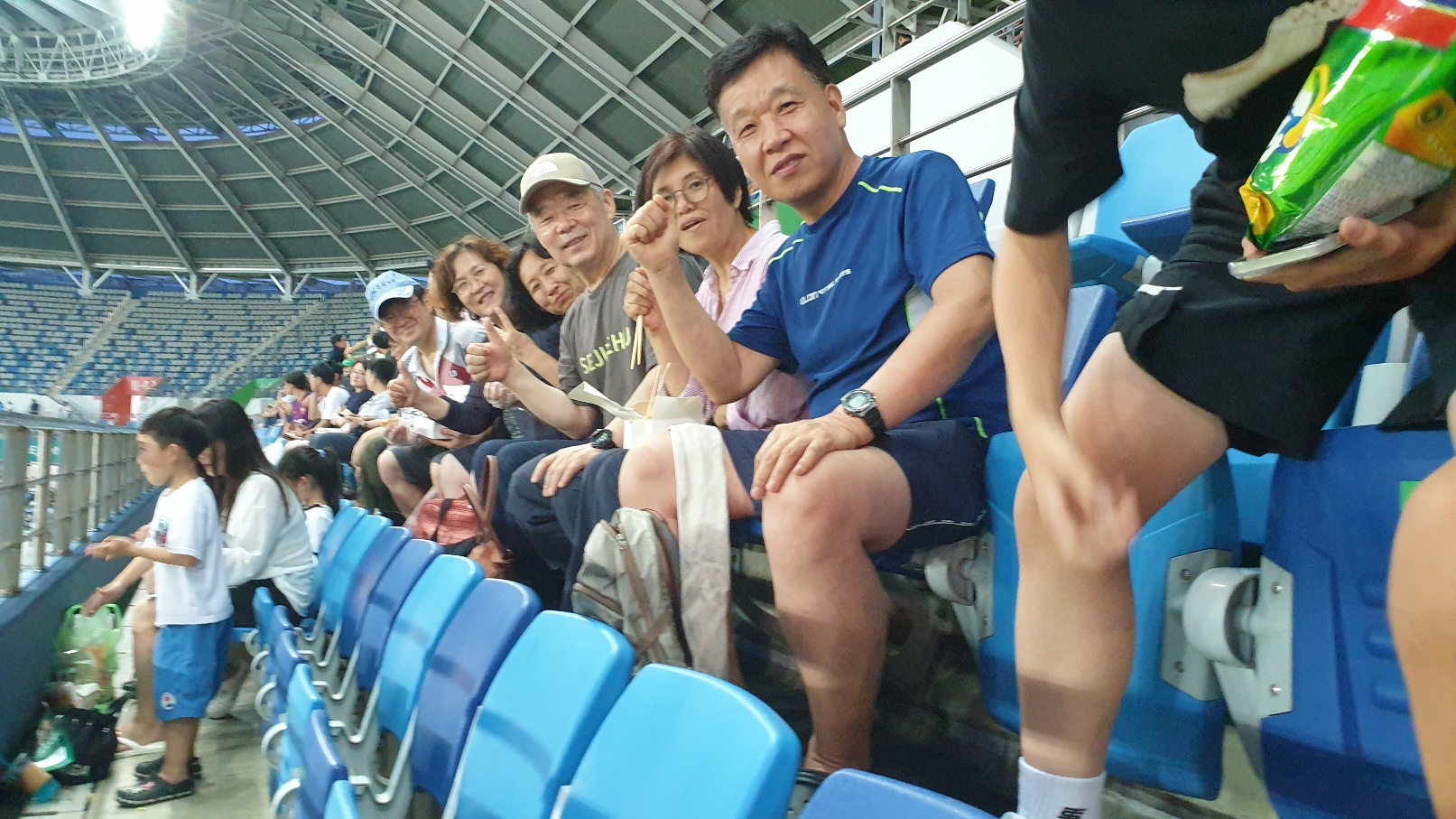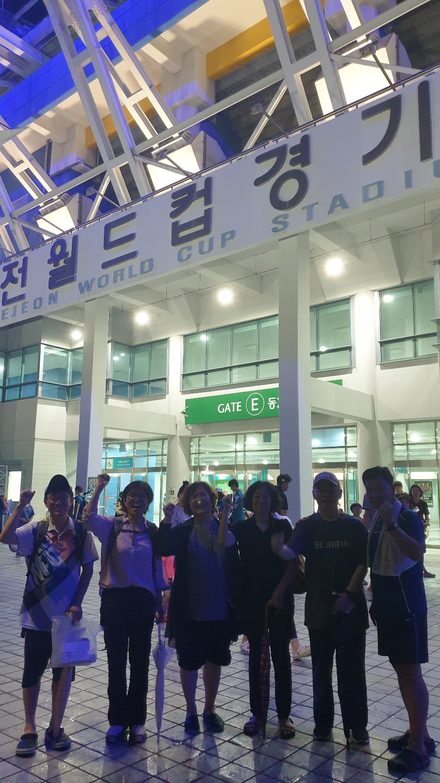 어깨동무 건강반 연간 활동계획에 의거 7월달은 건강반원들의 친목도모 및 화합의 장 구현을 목표로 대전월드컵구장에서 대전하나 시티즌 대 대구 프로축구 경기를 관람하였습니다. 운동겸 어은동에서 걸어서 월드컵경기장까지 손에 손잡고 왕복으로 다녀왔습니다. 우리 건강반원들의 응원 덕분인지 경기 또한 1대0으로 대전하나시티즌이 승리하여 돌아오는 발걸음 또한 한결 가벼웠습니다. 함께 뜨거운 가슴으로 응원하고 함께 고함치는 동안 우리는 한마음 한가족이 되었으며 한여름밤의 뜨거운 추억을 간직하게 되었습니다. 돌아오는 길에 동네에서 생맥주한잔으로 오늘 회포를 풀었으며 더욱 더 건강한 어깨동무 건강반이 되자는데 의기투합, 즐거운 한여름밤의 추억이 되었습니다.