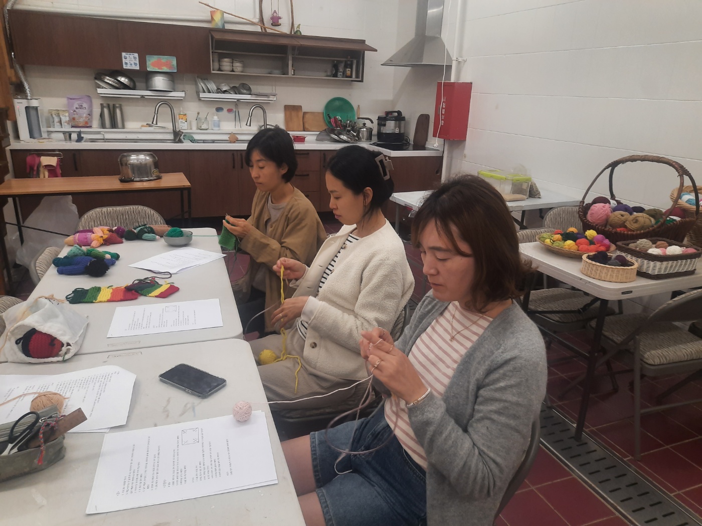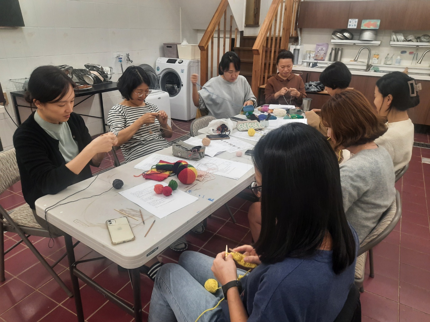 근황 나누기, 지난 작업 되돌아보기(완성품 공유), 뜨개인형 만들기 이어가기 (개인차가 있어서 공, 동물, 사람인형을 각자 선택하여 작업함) 서로 도와가며 활동이 잘 이루어짐