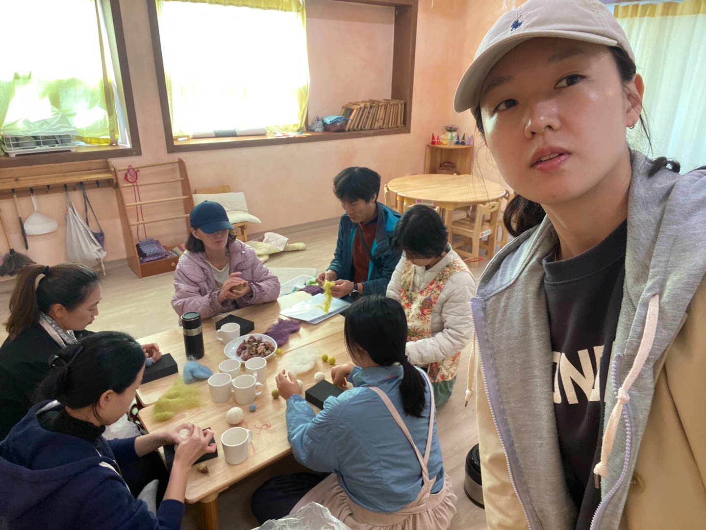 근황나누기, 바늘 이용하여 양모공 만들기 (울실, 바늘용 실 활용하여 작업해보기), 바늘 사용하면서 찔림 사고가 있긴 하였으나 즐겁게 이야기 나누며 활동함